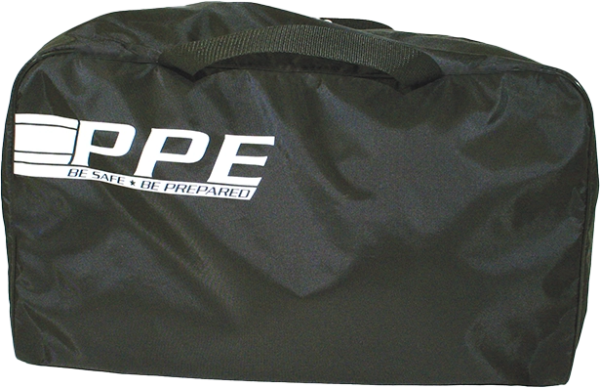 Overall area is 2,600 cubic inches. Overall dimensions are 18”L x 12”W x 12”H #192BK-PPE – With logo. #192BK-PLN – Without logo. Overall dimensions are 24”L x 12”W x 13”H. Overall area is 3,750 cubic inches. Designed to carry personal protective equipment such as, gas mask or SCBA face-piece, protective suits, gloves, and other personal items, this is lightweight and durable. Constructed with nylon pack cloth, it is available in black and weighs 12 oz.